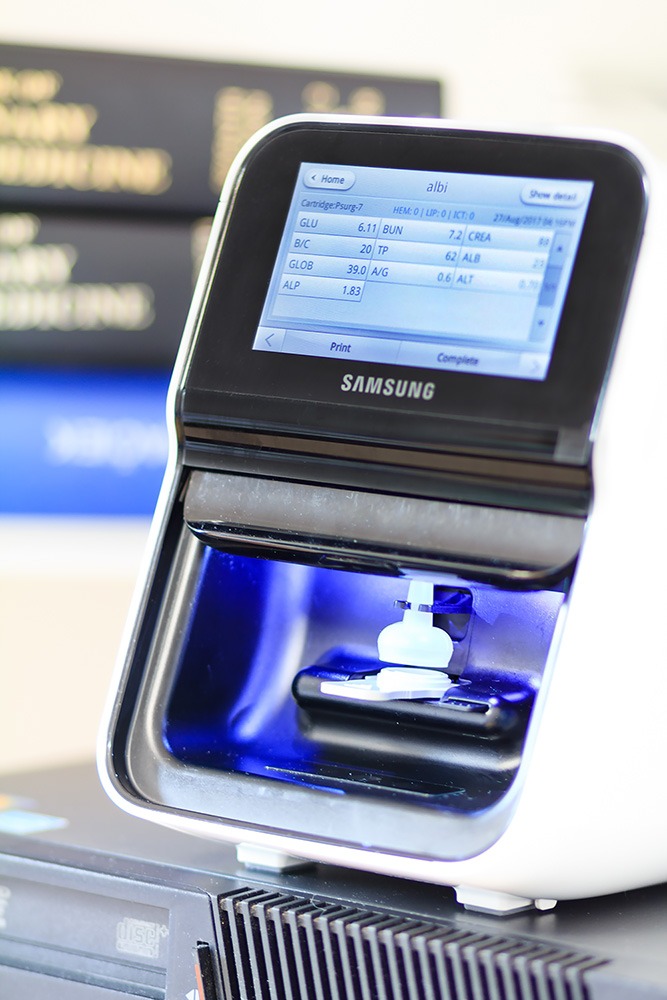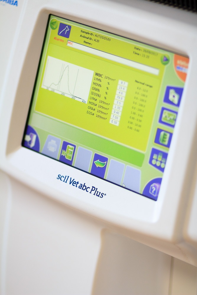 V roce 2016 jsme zřídili vlastní veterinární laboratoř s hematologickým a biochemickým analyzátorem. Díky laboratoři máme výsledky vyšetření krve a moči k dispozici během několika minut.